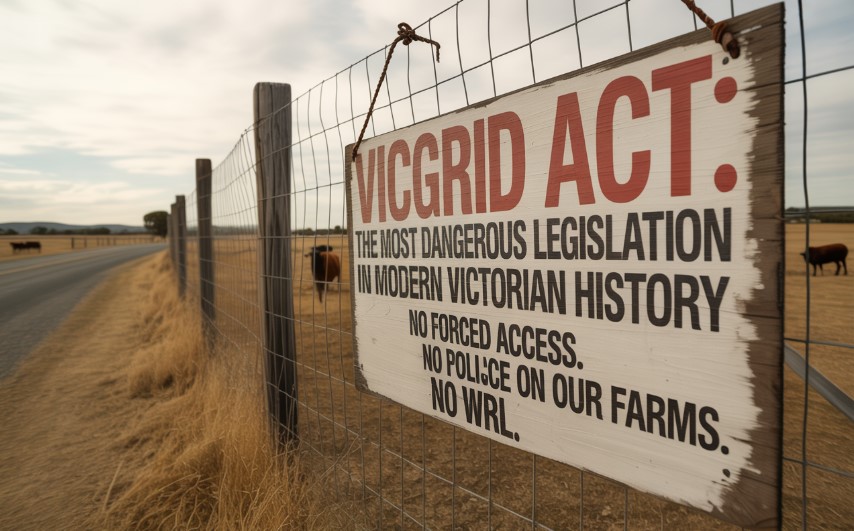The so-called “National Electricity (Victoria) Amendment (VicGrid Stage 2 Reform) Bill 2025, currently before the Victorian Parliament is, in our view, the most dangerous piece of legislation in the modern history of this state. It is not a bill for the people. It is a handout to corporate energy interests, delivered at the expense of regional communities, private landholders, and the land itself.