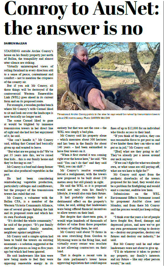 Take, for example, our local MPs, Catherine King and Sam Rae. You’d think, with a big, ugly project like the Western Renewables Link threatening their own backyard, they’d be out there, boots on the ground, ready to defend the farm. They are, after all, Ministers. They have a voice. They have power. We know this because they have an abundance of titles, as our research team – by which I mean Google – helpfully pointed out.